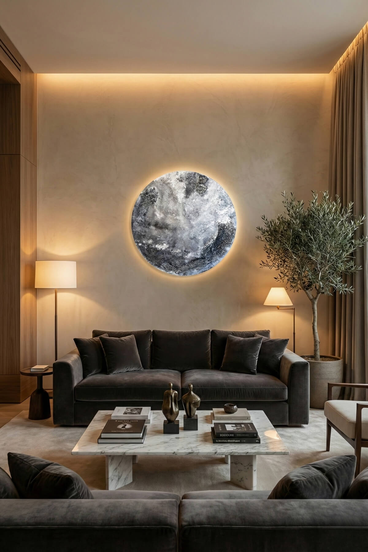 Whether you want a customized Moon piece or a completely unique artwork, we collaborate closely with you to define size, palette, texture, and finishes.